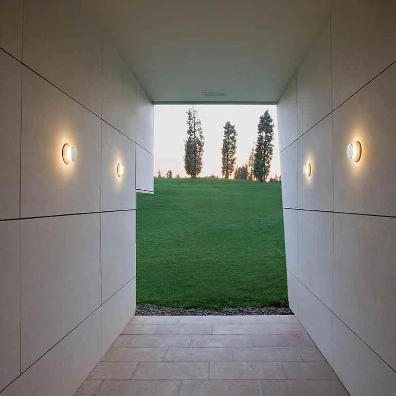 Im Außenbereich zeigt sich die Stärke dieser runden kleinen Glas Außenwandleuchte besonders deutlich. An Fassaden, Eingangsbereichen oder Terrassen sorgt sie für Orientierung, Sicherheit und Atmosphäre zugleich. Die Leuchte setzt Lichtpunkte, die die Architektur betonen, ohne sie zu dominieren. Gerade in Kombination mit mehreren Leuchten entsteht ein harmonisches Lichtbild, das Fassaden strukturiert und Tiefe verleiht.