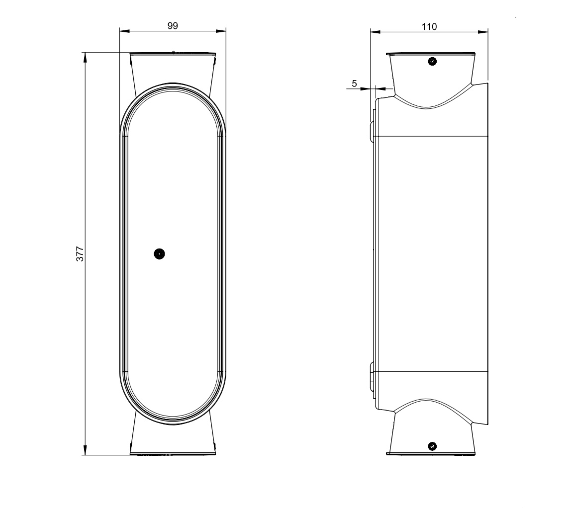 Abmessungen Höhe 377 mm, Breite 99 mm, Tiefe 110 mm