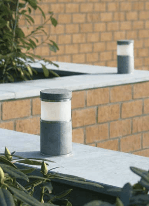 Außenlampe rund für Mauerbegrenzung blaustein: Der verwendete Blaustein verleiht der Leuchte nicht nur ihr edles Aussehen, sondern macht diese auch einzigartig, jede Leuchte ist somit ein Unikat.