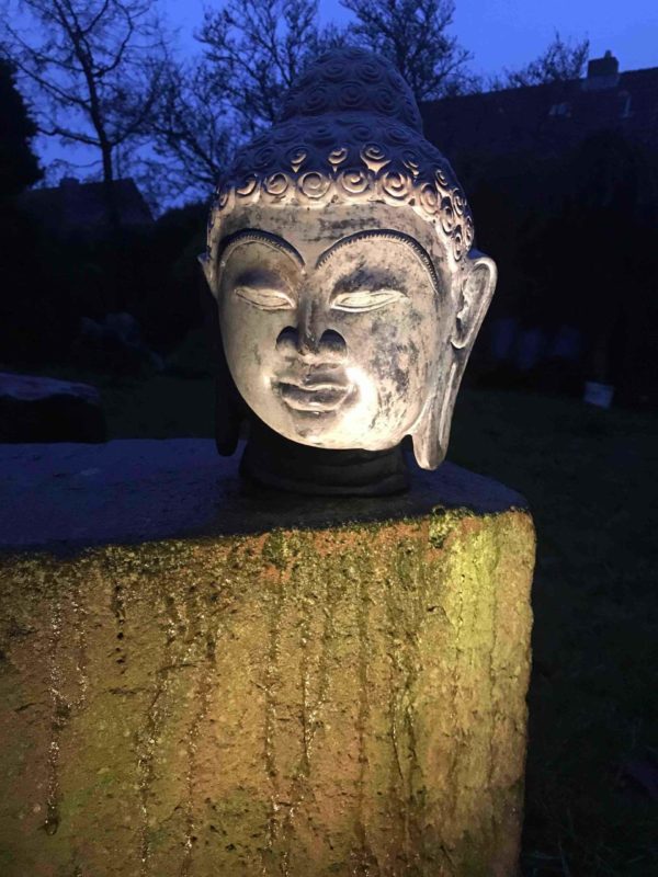 Der Buddhakopf nachts beleuchtet schafft eine neue, strahlende Gartenatmosphäre! Durch das gezielte Beleuchten des Buddhakopf mit grüner Patina werden Akzente gesetzt, einzelne Zonen der schönen rustikalen und schwere Ausführung definiert und als Highlight des Außenbereiches effektvoll betont. Wir importieren den aus Indien stammenden Buddhakopf (Höhe: 30 Breite: 20cm ) direkt und er ist bei uns erhältlich. Wie auch der kleine LED Aufbaustrahler, der den Buddakopf nachts beleuchtet.