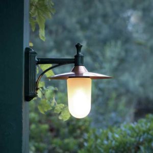 Die Dänische Außen Wandleuchte aus Kupfer ist eine elegante und exklusive Lampe, die ein angenehmes und gut abgeschirmtes Licht abgibt.