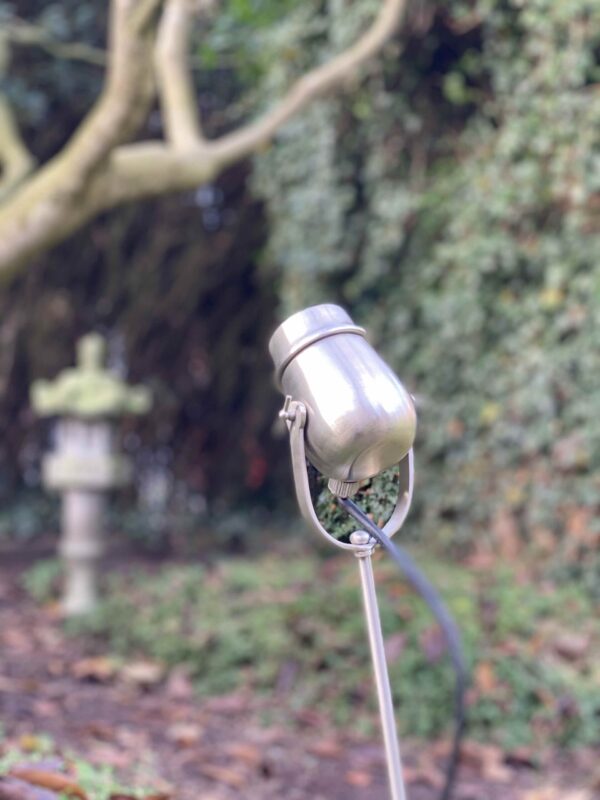 Edler GU10 Nickel Gartenstrahler mit Erdspieß und schwenkbarem Leuchtkopf
