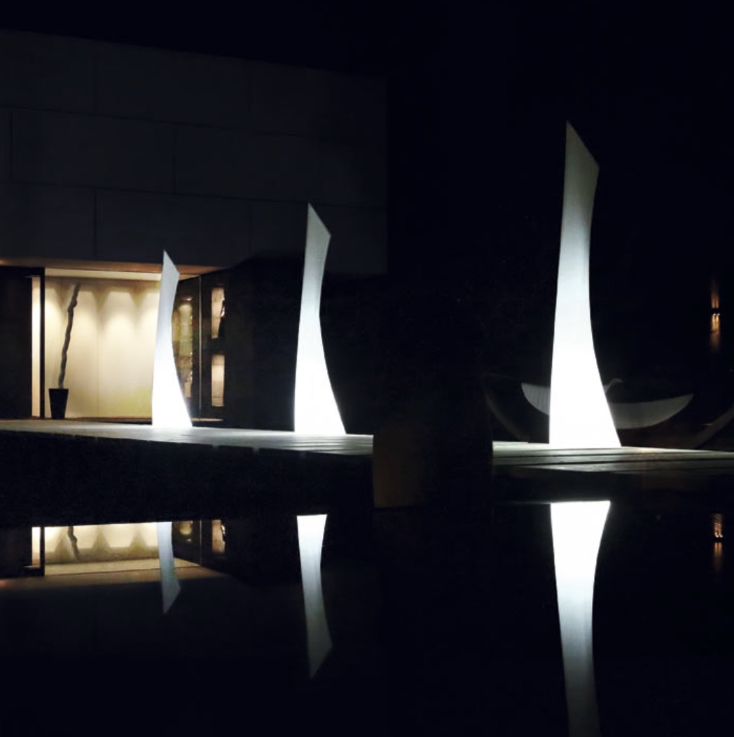 Die eindrucksvoll großen Designleuchten für den Außenbereich werden hergestellt aus äußerst stabilem und langlebigem thermoplastischem Kunststoff, der dank der Beschaffenheit des Materials und der geschlossenen Form ein blendfreies und sanft gestreutes Licht garantiert. Die Designleuchten sind in unterschiedlichen Varianten der Beleuchtung erhältlich.