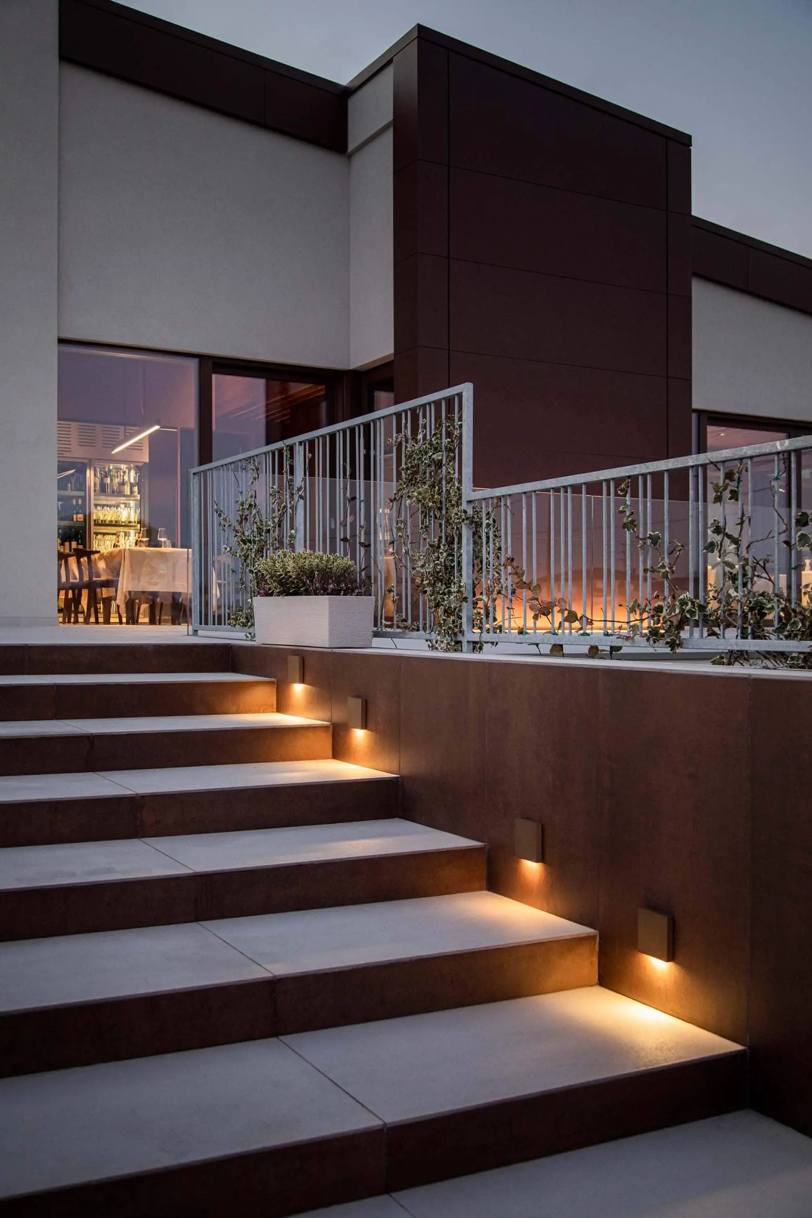 Flache quadratische Treppenstufenleuchten exklusiv und modern als architektonische Lichtintegration