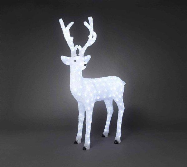 Großes Leucht Rentier von Konstsmide – Dieser hübsche Hirsch ist eine eindrucksvolle Weihnachtsbeleuchtung für Terrassen, Gärten und EingangsbFrontend Editorereiche. Mit einer stolzen Höhe von 130cm setzt dieses Schmuckstück ein Statement in jeder Umgebung. Es verwandelt Ihre Gartendekoration in eine Magie Winterwunderland. Das hochwertige Acrylglas Renier versprüht durch 184 kühle weiße Dioden den gleichen Glanz wie das auffällige Licht und ist damit ein besonders attraktiver Blickfang für Sie, Ihre Gäste und alle Passanten. Mit einer IP44-Einstufung sorgt diese Acrylform für eine gute Atmosphäre im Innen- und Außenbereich. Es bietet Ihnen den besten Schutz gegen feste Fremdkörper und Spritzwasser.