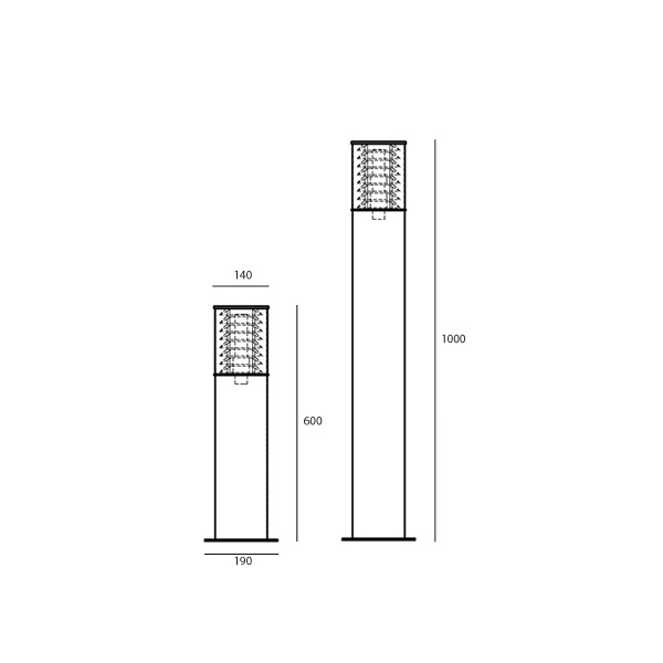 Abmessungen: Durchmesser 140 mm, Höhe 600, 1000 mm