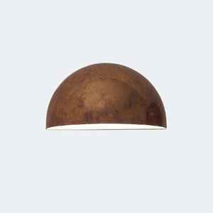 Die Kupfer halbschalen Wandleuchte außen mit nach unten gerichteten Lichtauslass, der die darunter liegende Fläche direkt beleuchtet.