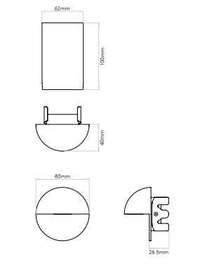 Abmessungen Durchmesser: 80 mm, Tiefe 40 mm, Einbaudurchmesser 62 mm, Einbautiefe 40 mm