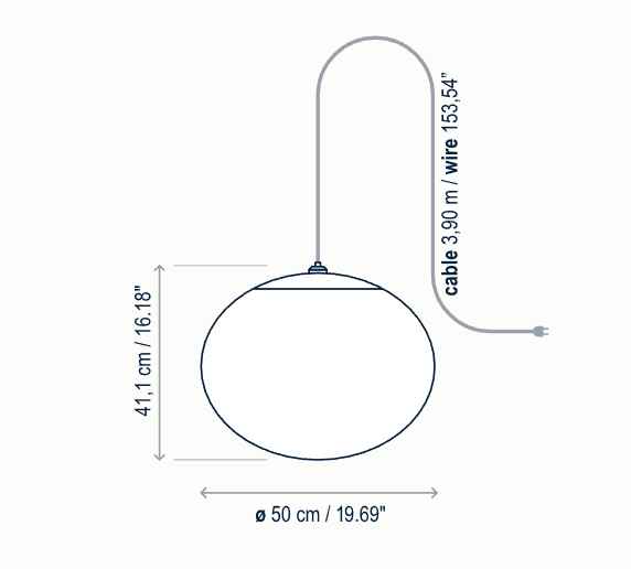 Produktdetails der mobilen elipsenförmigen außen Hängeleuchte mit Kabel und Stecker
