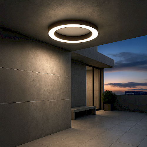Die moderne Decken Anbau Ringleuchte für außen als architektonisches Highlight