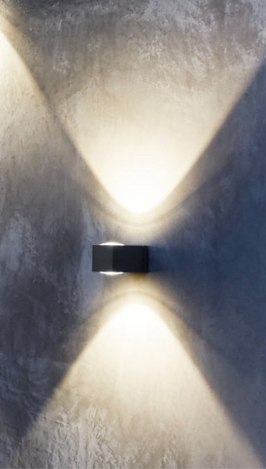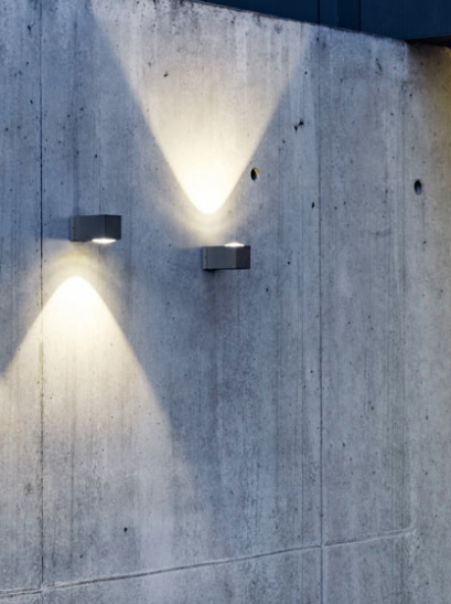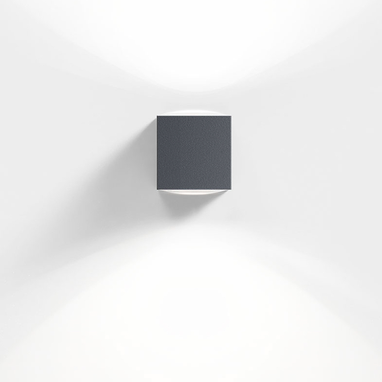 Die Up & Down-Ausführung verbindet beide Richtungen zu einem symmetrischen, doppelseitigen Lichtbild. Ob als Einzelakzent oder in Reihen entlang einer Fassade montiert – diese Variante schafft rhythmische Lichtmuster, die Tiefe und Dynamik erzeugen. Zwei perfekt ausbalancierte Lichtkegel zeichnen sich ober- und unterhalb der Leuchte ab und verleihen der Wand eine lebendige Struktur.