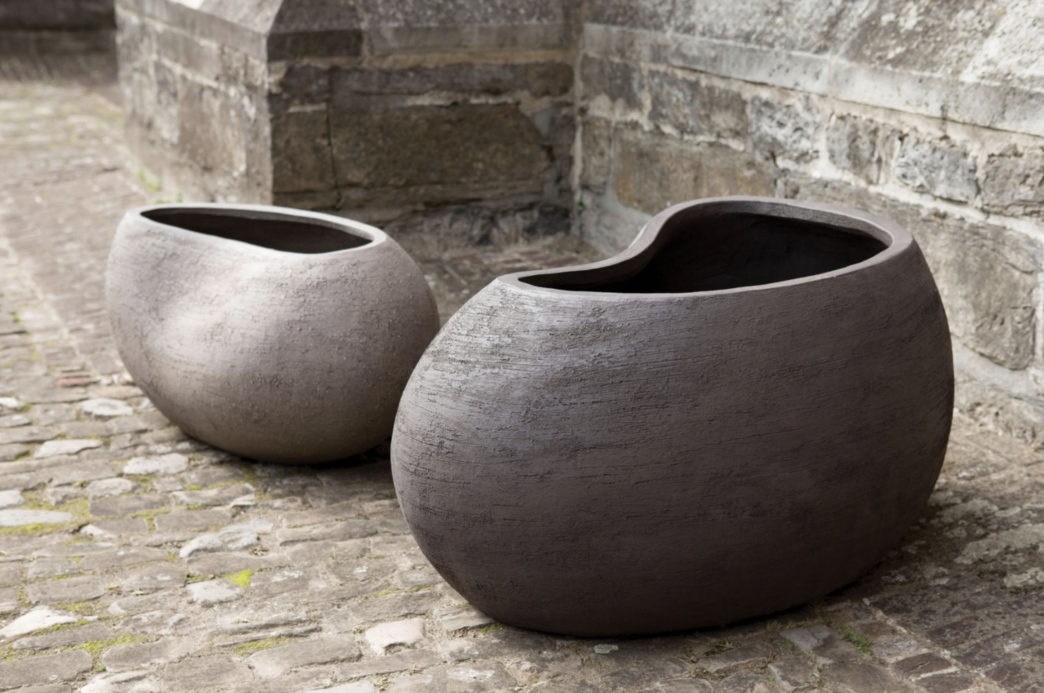 Die originellen outdoor Pflanzgefäße – oder wie man dieses aussergewöhnliche Gefäss auch bezeichnen möchte – ist ein absoluter Blickfänger. Ob bepflanzt oder nicht, mit der unregelmässig geschwungenen Ton-Skulptur bringen Sie Pepp in jede Gestaltung.  Für eine Bepflanzung eignen sich hauptsächlich Stauden, Ziergräser oder flache, kissenartige Pflanzen. Die Pflanzgefäßen sind in fünf Größen lieferbar(Länge/Breite/Höhe/Gewicht): 60cm/43cm/ 39cm/30kg, 70cm/45cm/ 39cm/40kg, 80cm/57cm/ 45cm/60kg, 90cm/69cm/ 49cm/75kg, 100cm/67cm/ 56cm/90kg