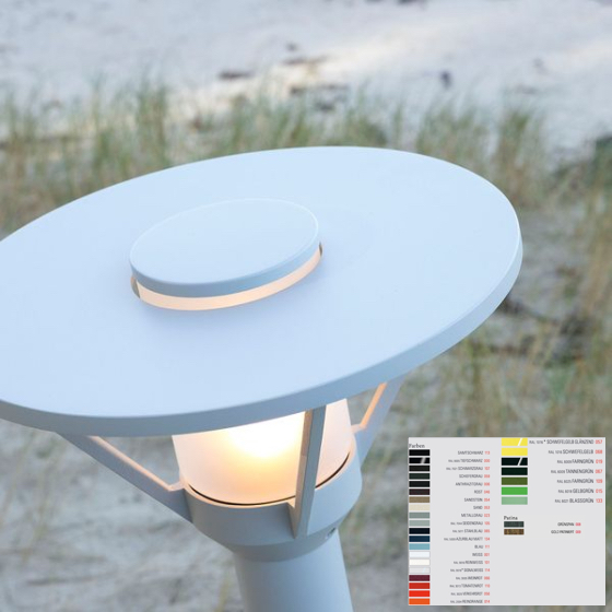 Um sich perfekt in die jeweilige Architektur und die umgebende Natur einzufügen, wird diese Pollerleuchte perfekt für Küstennahe maritime Beleuchtung in einer beeindruckenden Palette an Farben und Ausführungen angeboten. In der Standardausführung besticht sie durch ein elegantes Seidengrau (RAL 7044). Dieser Farbton wirkt besonders edel und zurückhaltend; er erinnert an den hellen Sand der Dünen oder die Farbe von verwaschenem Treibholz und fügt sich somit nahtlos in die maritime Landschaft ein.