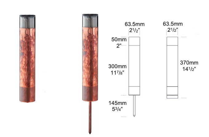 Produktdetails der schmalen dezenten Kupfer Gartenleuchte Wegleuchte