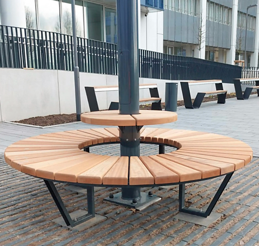 Die Kombination aus Licht, Sitzgelegenheit und Lademöglichkeit steigert die Aufenthaltsqualität erheblich – ein ideales Konzept für Parkanlagen, Schulhöfe, Hotelterrassen oder öffentliche Plätze.
